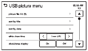 The infotainment system can view picture files stored on a USB storage device and devices that support Media Transfer Protocol (MTP).